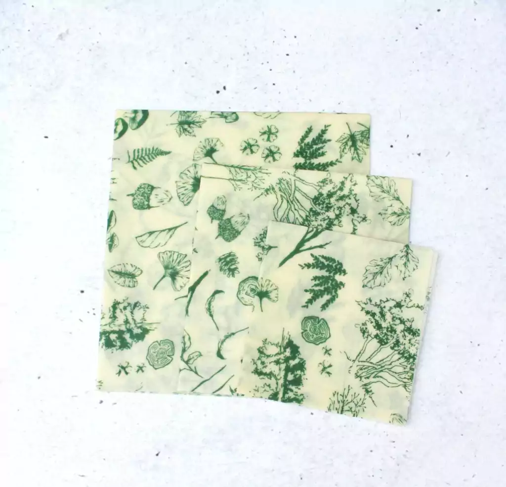 - Paños Ecológicos hechos género 100% algodón, Cera Virgen de Abeja , resina de pino y aceite de jojoba. Estos ingredientes crean una barrera antibacterial y antimicotica, permitiendo que tus alimentos se descompongan mas lento y se mantengan frescos por mas tiempo.